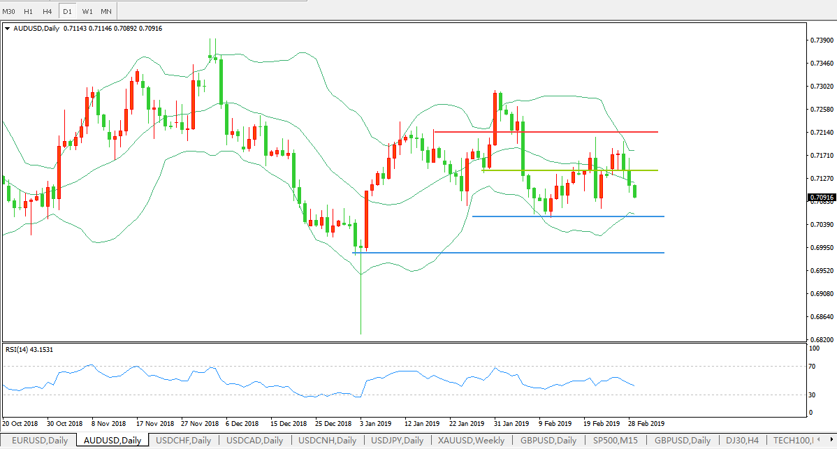 交易策略:在0.7145之下,看跌,目标价位为0.7045,然后为0.6990