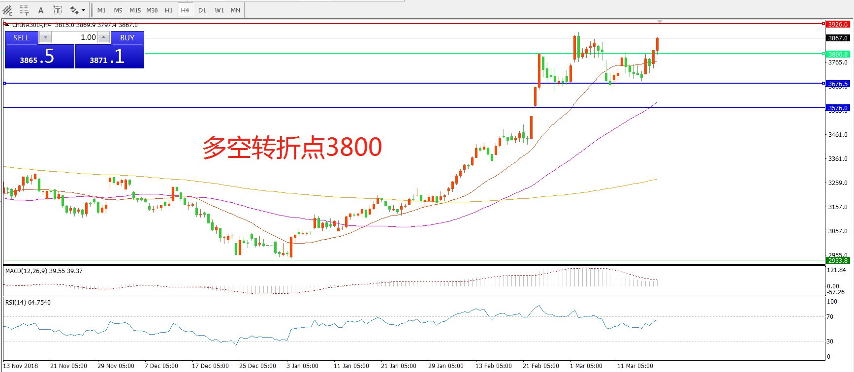 多空转折点:3800.00