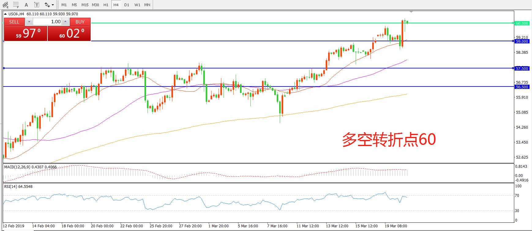 交易策略:在60.00之下看涨,目标62.00 65.00
