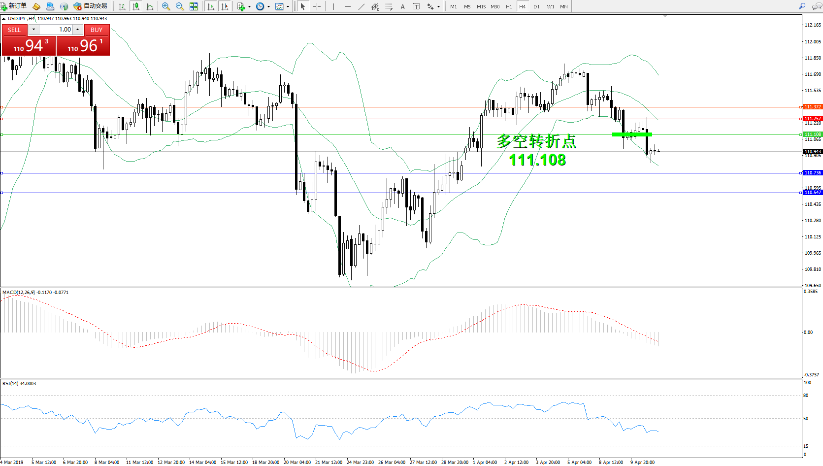 交易策略:111.108下方看跌,目标110.736、110.547