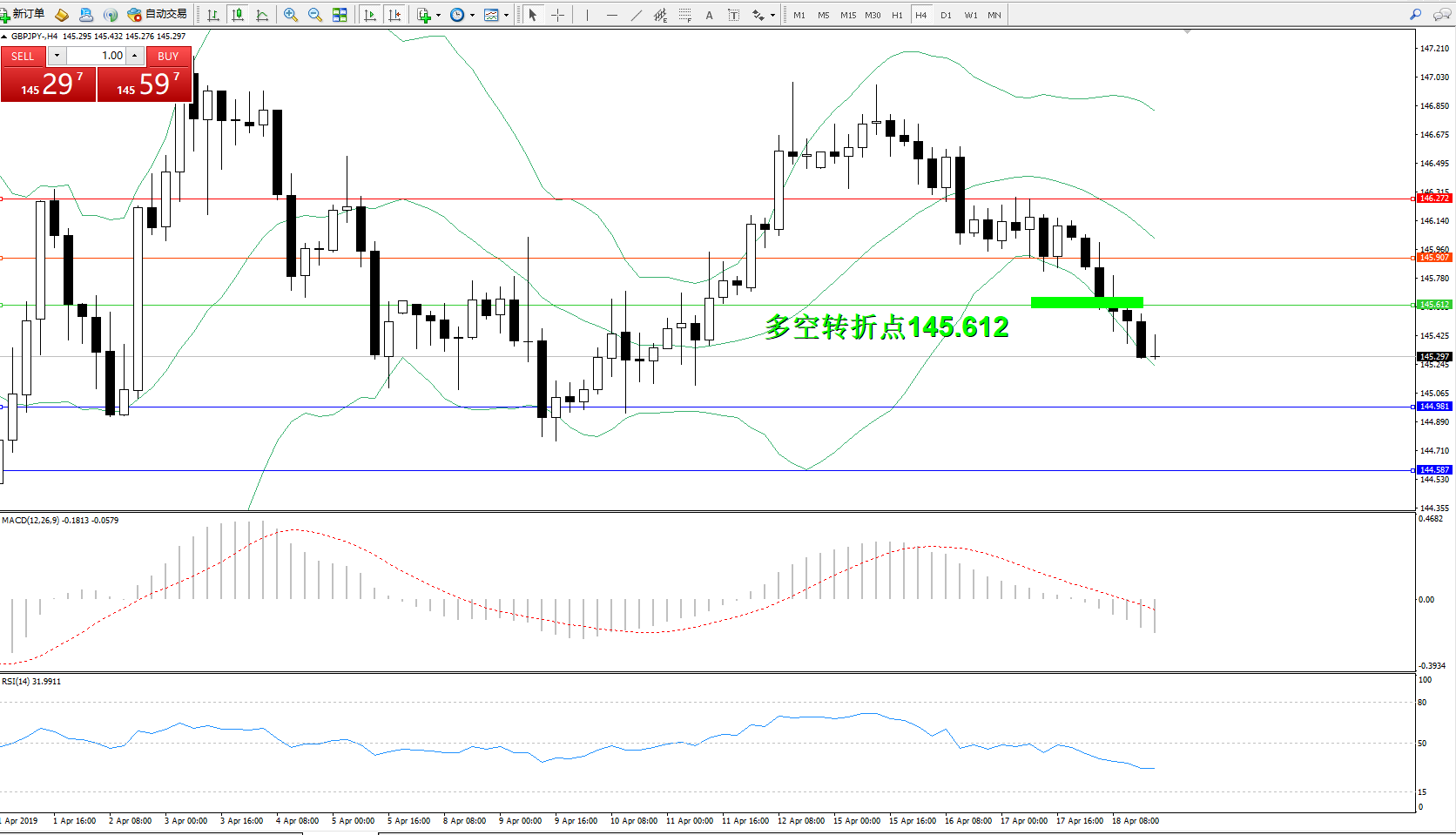 交易策略:145.612下方看跌,目标144.981、144.587