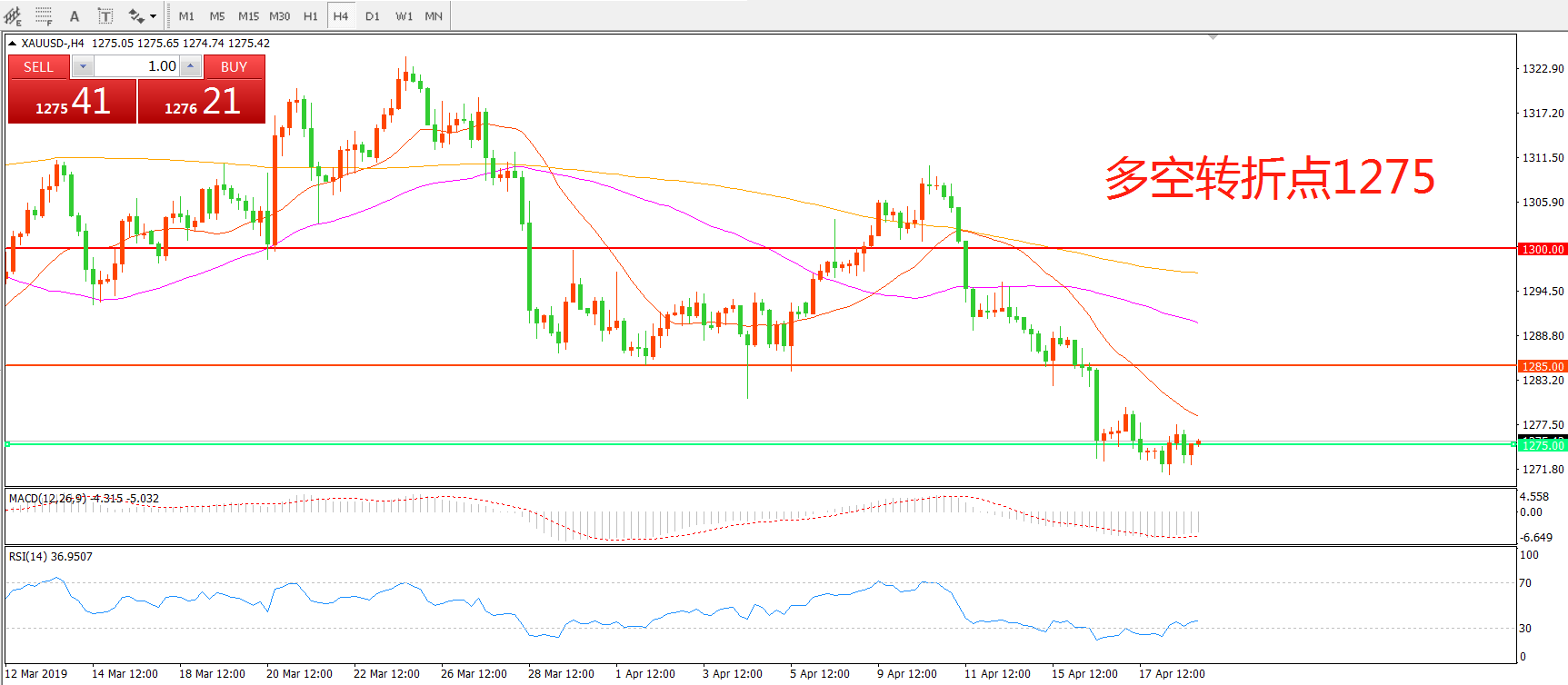 昨日美国公布的多项经济数据表现亮眼。上周首次申请失业救济人数降至19.2万,创近50年来最低水平。美国3月零售销售出现一年半以来的最大增幅,表明美国经济经历年初疲软后已趋于稳定。但欧美将于周五休市,交易清淡。金价小幅微涨,报1275.42美元/盎司。