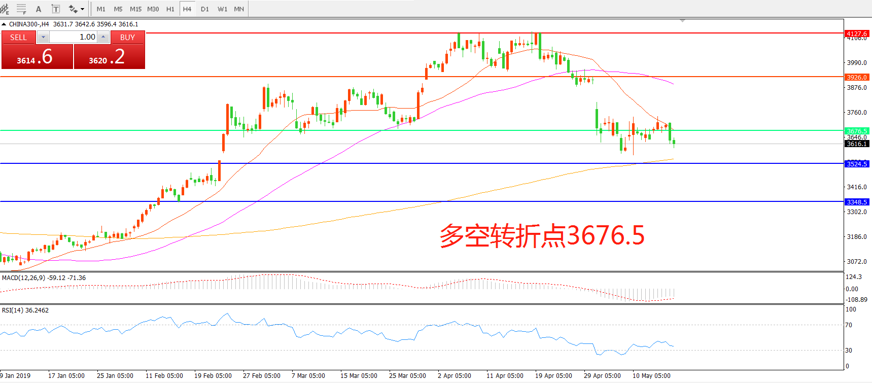 多空转折点:3676.50