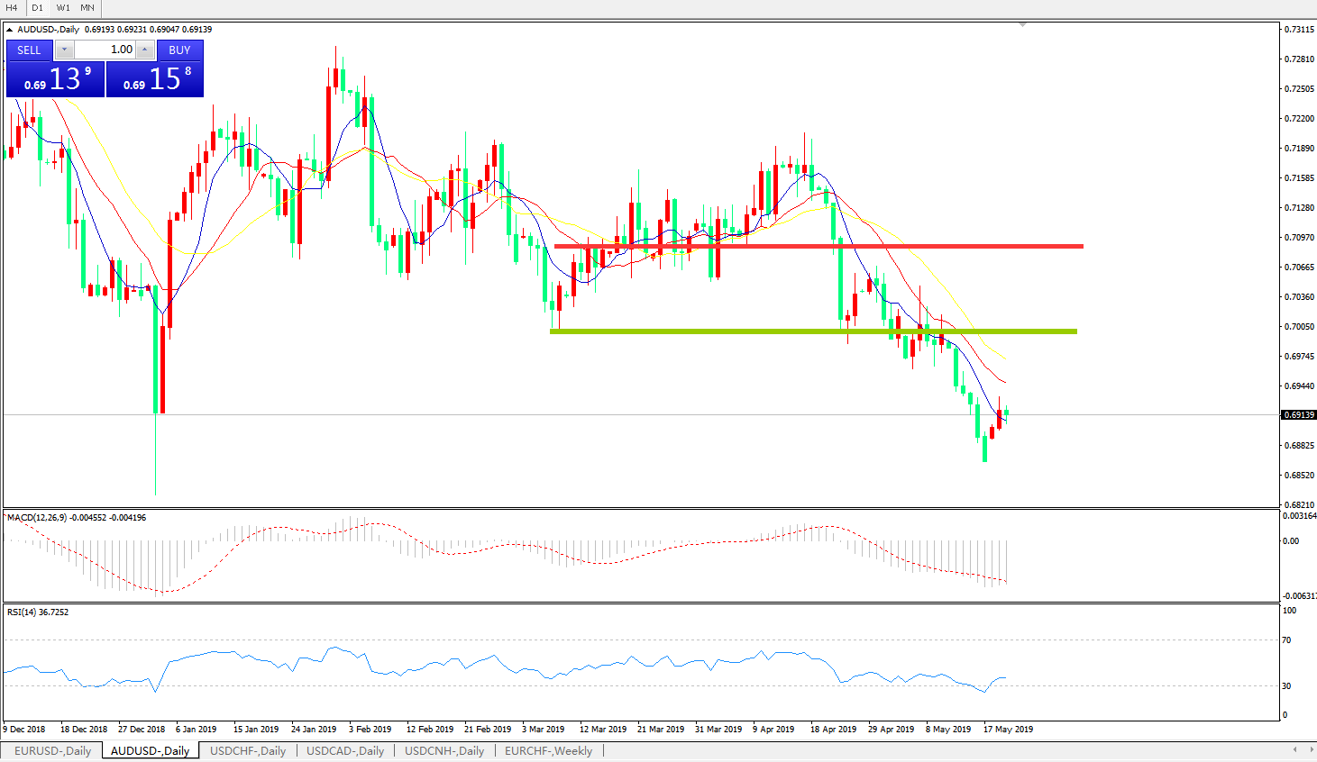 交易策略:在0.7000之下,看跌,目标价位为0.6900,然后为0.6830