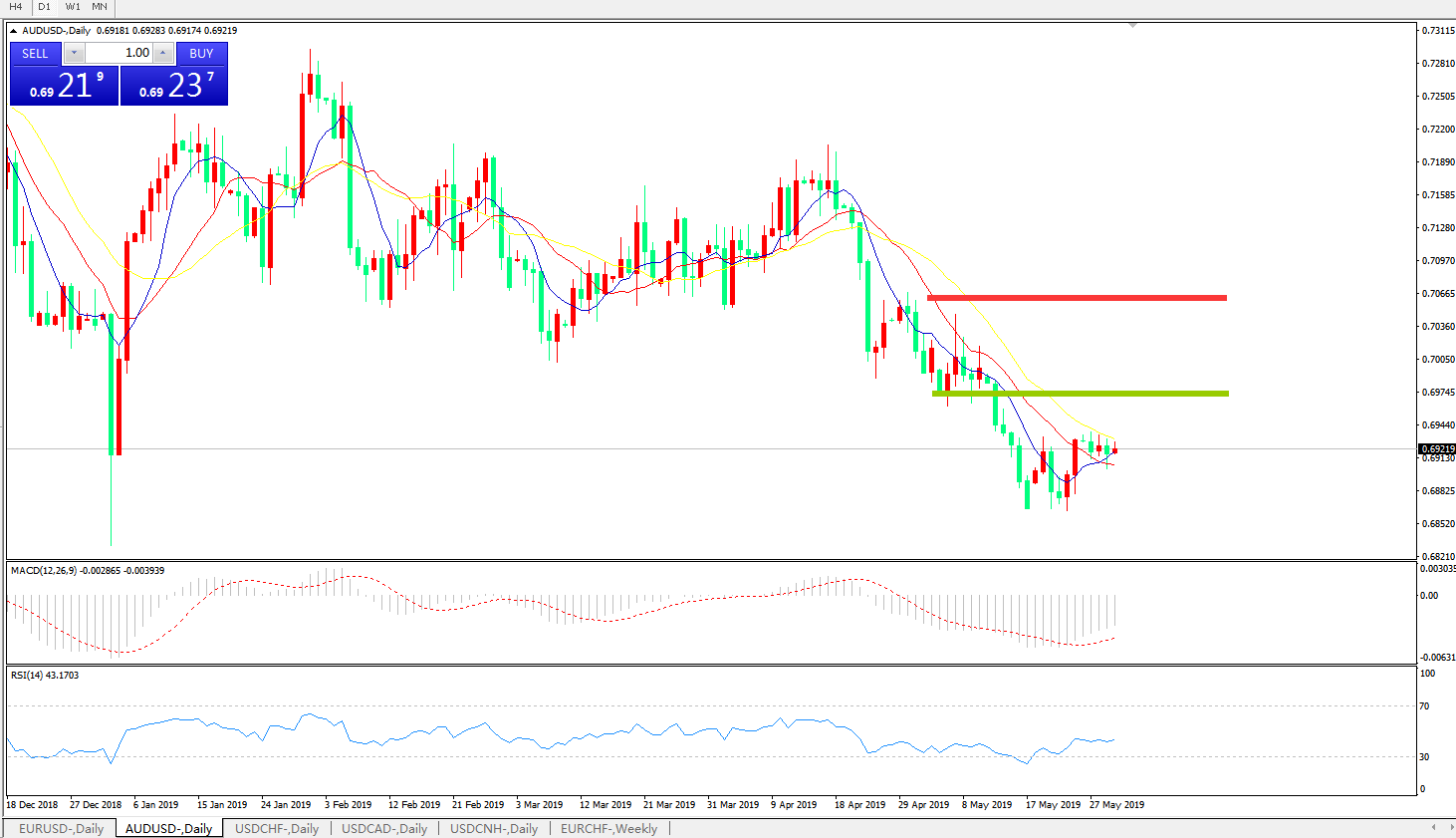 交易策略:在0.6960之下,看跌,目标价位为0.6900,然后为0.6830。