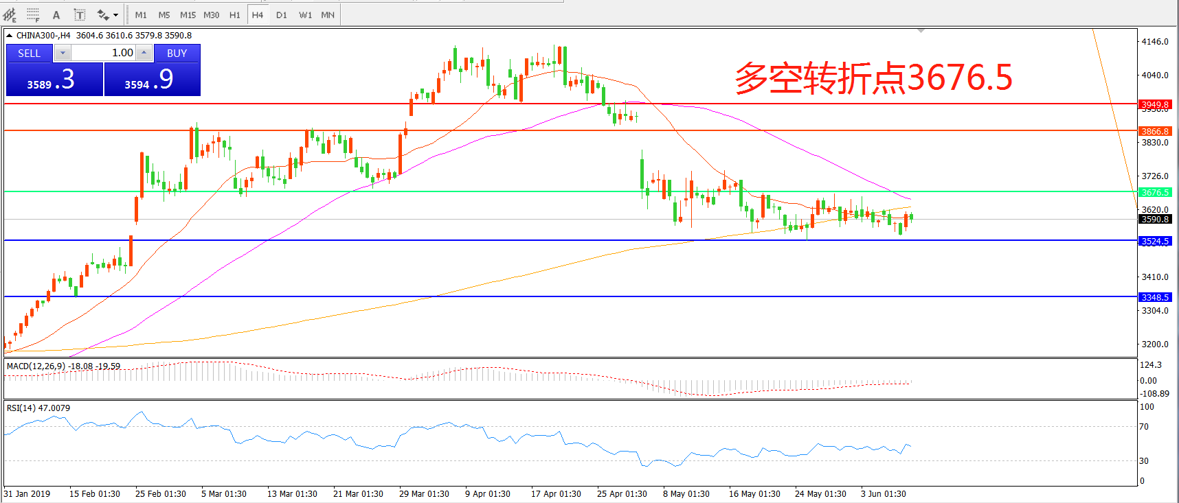 多空转折点:3676.50