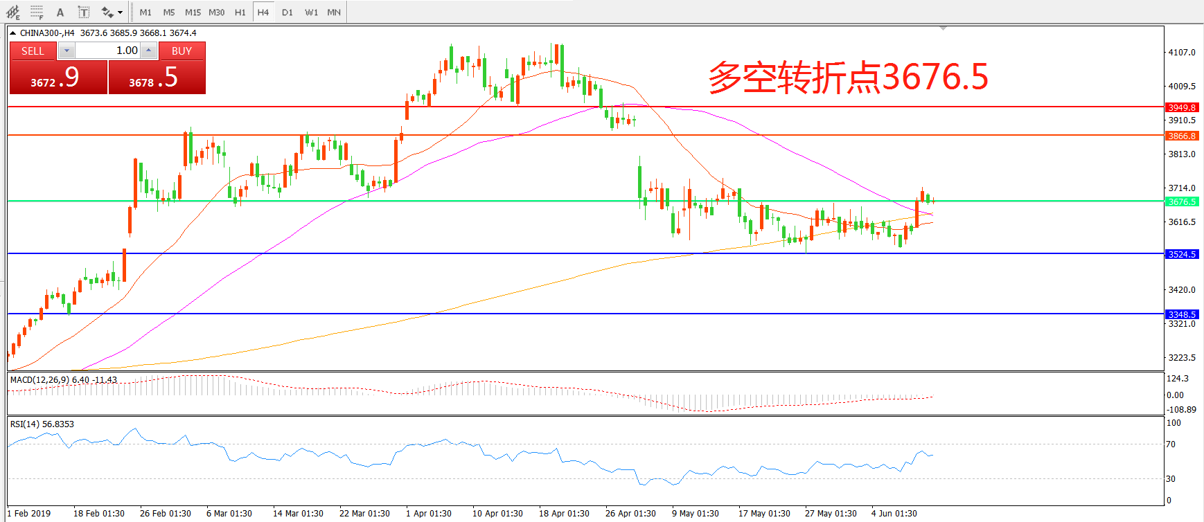 沪深300指数CHINA300 4小时图