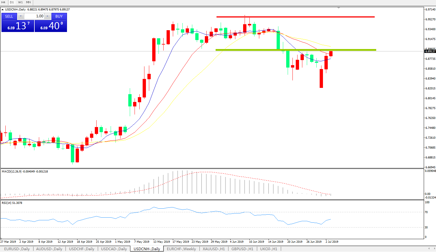 交易策略6.9000之下,看跌,目标价位为6.8100,然后为6.7600