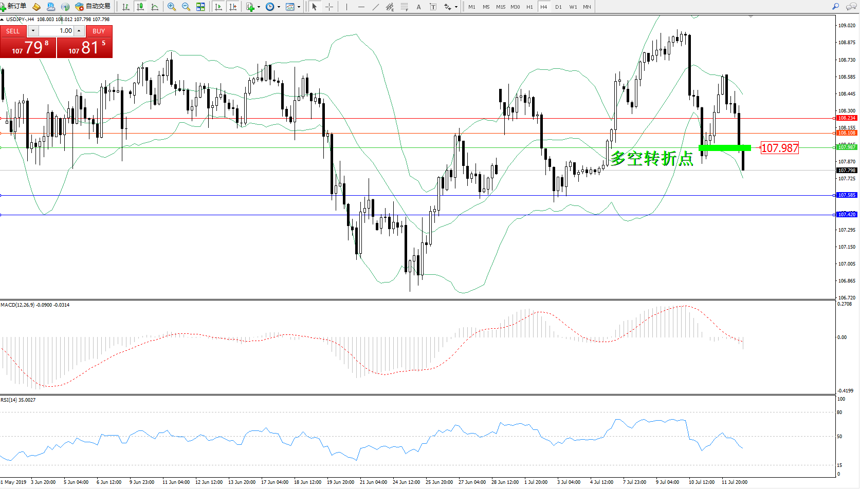 交易策略:107.987下方看跌,目标107.585107.420