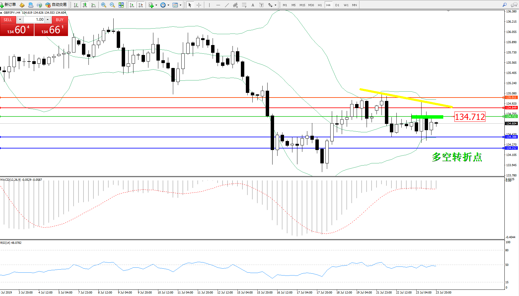 交易策略:134.712下方看跌,目标134.388、134.212