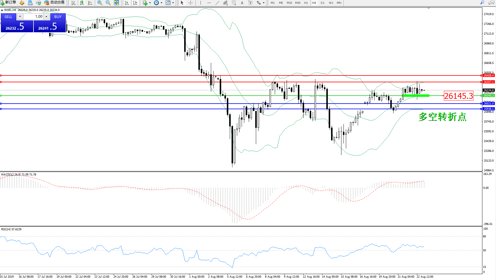 道琼斯指数8月22日(周四)收盘上涨49.50点,涨幅0.19%,报26252.24点。投资者等待本周怀俄明州杰克森霍尔会议上美联储可能发表的公告或声明,对不断恶化的全球经济前景作出反应。市场人士表示,美联储可能宣布一项刺激措施或重申美联储的宽松立场,鲍威尔可能会淡化降息的可能性,尽管市场已经完全消化了下个月的降息预期。鲍威尔在上次FOMC会议后的讲话中充满乐观情绪;美联储最新的会议记录证实,越来越多的人认为美国决策者不愿在未来几个月启动大规模降息周期,称7月的宽松政策是周期内的政策调整。决策者在是否降息的问题上出现分歧,但他们一致希望表明,他们没有走在进一步降息的预设道路上。