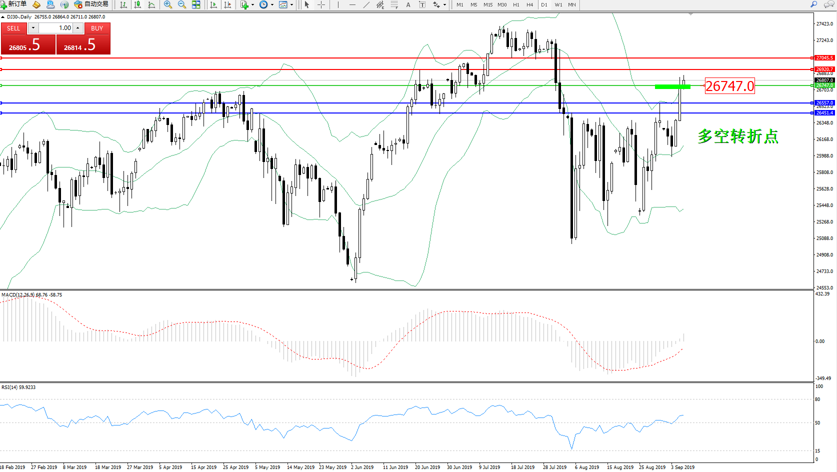 道琼斯指数96日(周五)收盘上涨69.30点,涨幅0.26%,报26797.46点。8月美国新增就业人数低于预期,上个月美国企业新增13万个工作岗位,低于预测的16万,但时薪增长0.4%,略高于分析师预测的0.3%8月就业市场报告喜忧参半,强化了经济扩张放缓以及美联储可能进一步降息的观点。鲍威尔预计美国和世界经济将温和增长,但表示联储正在监测“重大风险”。美联储将降息以维持有纪录以来持续时间最长的经济扩张,因经济前景面临的重大风险将为进一步宽松政策提供理据。