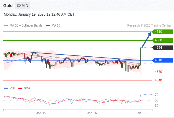 在 4610 之上,看涨,目标价位为 4680 ,然后为 4710 。