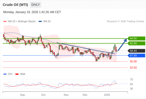 交易策略: 在 57.50 之上,看涨,目标价位为 62.50 ,然后为 64.50 。