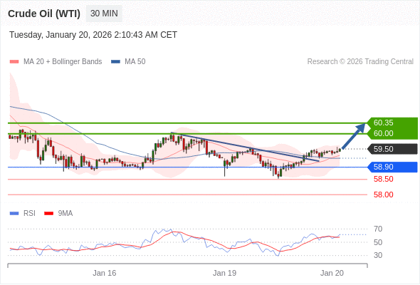 在 58.90 之上,看涨,目标价位为 60.00 ,然后为 60.35 。