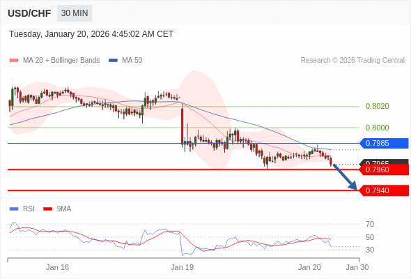 美元/瑞郎 当日内: 目标为0.7960。