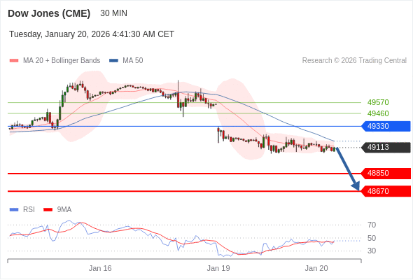 在 49330 之下,看跌,目标价位为 48850 ,然后为 48670 。