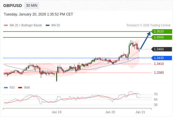 在 1.3430 之上,看涨,目标价位为 1.3500 ,然后为 1.3520 。