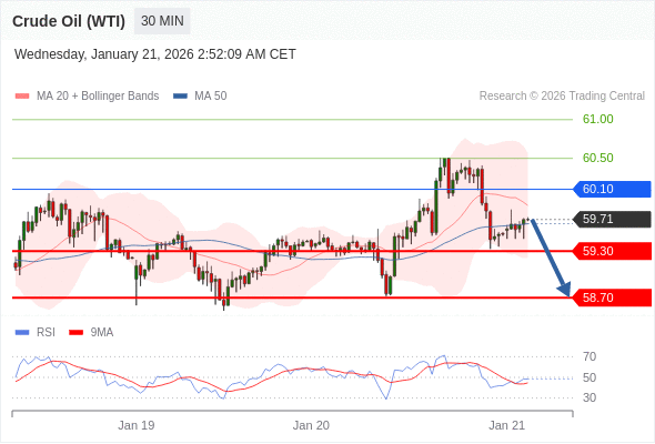 在 60.10 之下,看跌,目标价位为 59.30 ,然后为 58.70 。