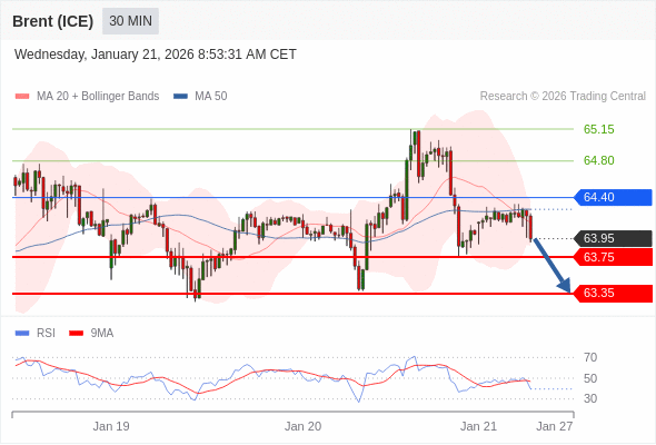 在 64.40 之下,看跌,目标价位为 63.75 ,然后为 63.35 。