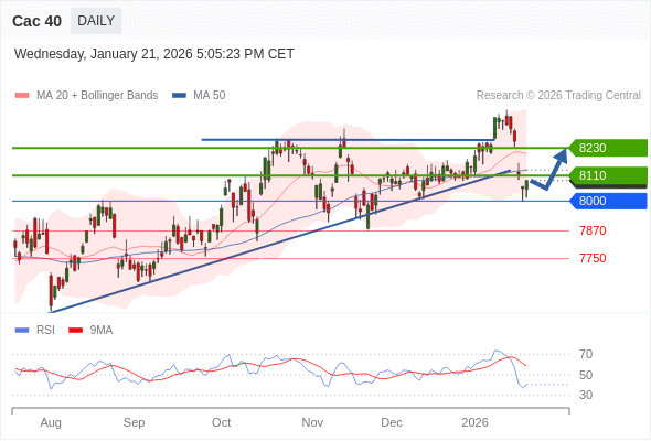 Cac 40 短线: 超短线(当日内)支撑位在8000附近。