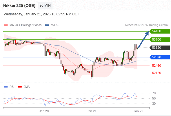 在 52870 之上,看涨,目标价位为 53700 ,然后为 54100 。