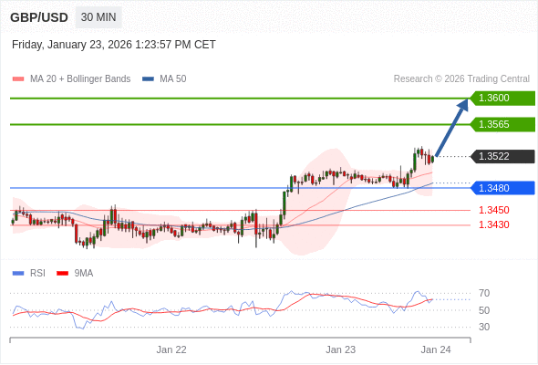 在 1.3480 之上,看涨,目标价位为 1.3565 ,然后为 1.3600 。
