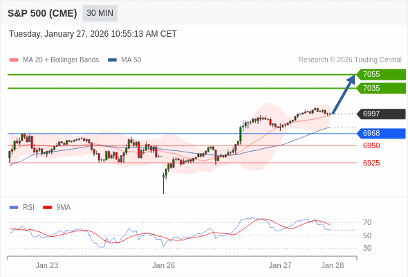 在 6968 之上,看涨,目标价位为 7035 ,然后为 7055 。