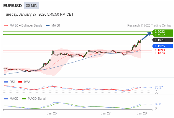 交易策略: 看涨,当 1.1925 为支撑位。