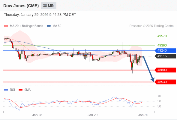 在 49240 之下,看跌,目标价位为 48800 ,然后为 48530 。