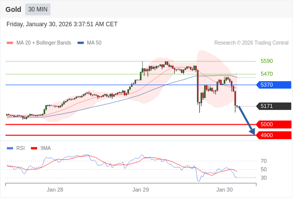 交易策略: 在 5370 之下,看跌,目标价位为 5000 ,然后为 4900 。