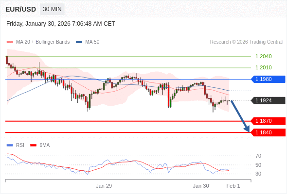 交易策略: 在 1.1980 之下,看跌,目标价位为 1.1870 ,然后为 1.1840 。