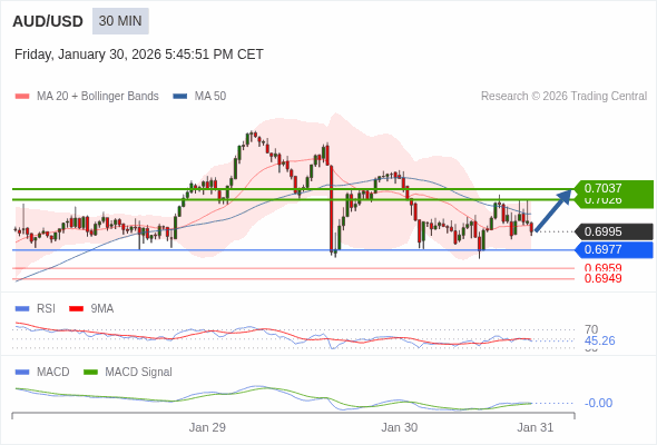 替代方案: 在0.6977以下,期待0.6959和0.6949。