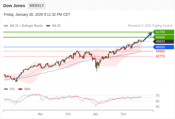 在 46600 之上,看涨,目标价位为 50600 ,然后为 52700 。