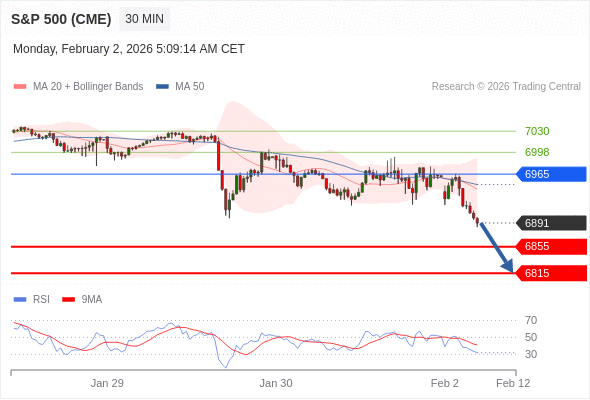 在 6965 之下,看跌,目标价位为 6855 ,然后为 6815 。