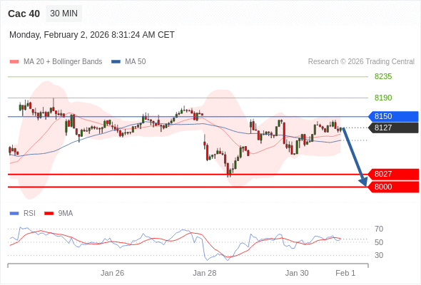 在 8150 之下,看跌,目标价位为 8027 ,然后为 8000 。