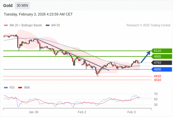交易策略: 在 4600 之上,看涨,目标价位为 4955 ,然后为 5110 。