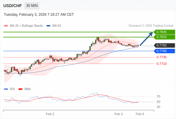 在 0.7760 之上,看涨,目标价位为 0.7815 ,然后为 0.7835 。