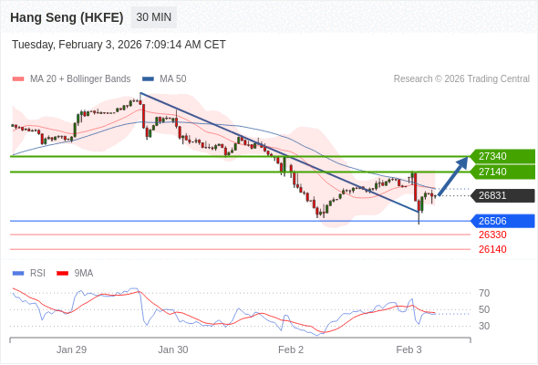 香港恒生指数期货 当日内: 目标位为27140。