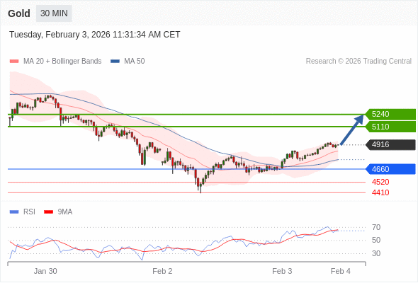 交易策略: 在 4660 之上,看涨,目标价位为 5110 ,然后为 5240 。