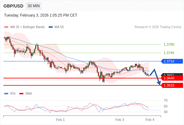 英镑/美元 当日内: 期待1.3640。