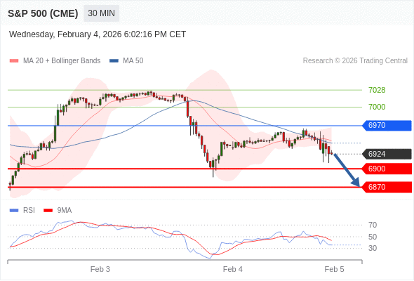 在 6970 之下,看跌,目标价位为 6900 ,然后为 6870 。
