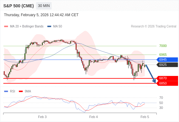 在 6945 之下,看跌,目标价位为 6870 ,然后为 6850 。