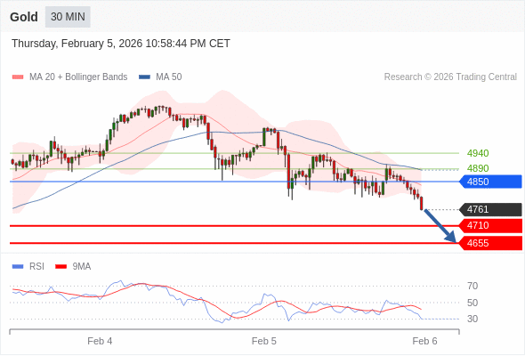 在 4850 之下,看跌,目标价位为 4710 ,然后为 4655 。