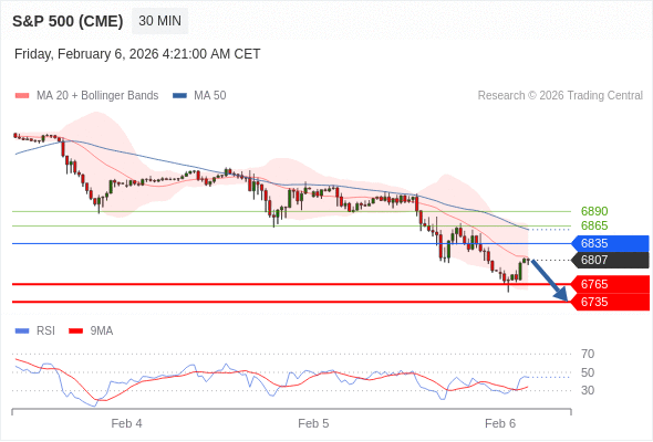 美国标普500指数期货 (H6) 当日内: 短期关键阻力位在6835。