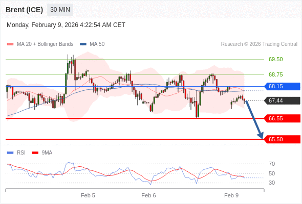 在 68.15 之下,看跌,目标价位为 66.55 ,然后为 65.50 。