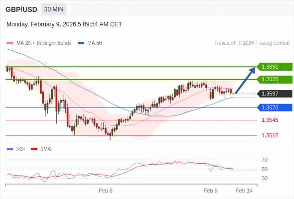 在 1.3570 之上,看涨,目标价位为 1.3625 ,然后为 1.3650 。