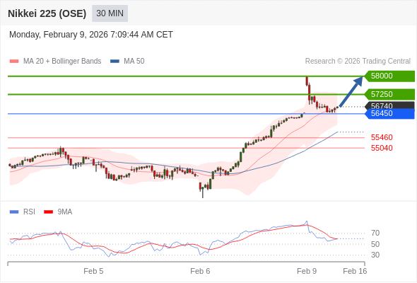 在 56450 之上,看涨,目标价位为 57250 ,然后为 58000 。