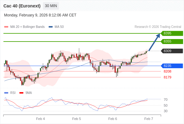 法国CAC指数期货 (Euronext) (G6) 当日内: 上升趋势。