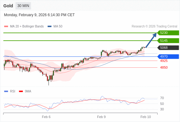 在 4970 之上,看涨,目标价位为 5145 ,然后为 5230 。